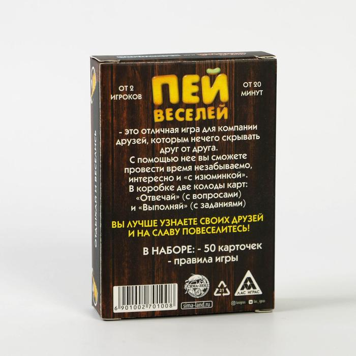 Купить игра для компании "пей веселей" 50 карт от 180 руб. с доставкой до пункта выдачи в Коммунаре. Интернет магазин ДекаМаркет. Оплата при получении.